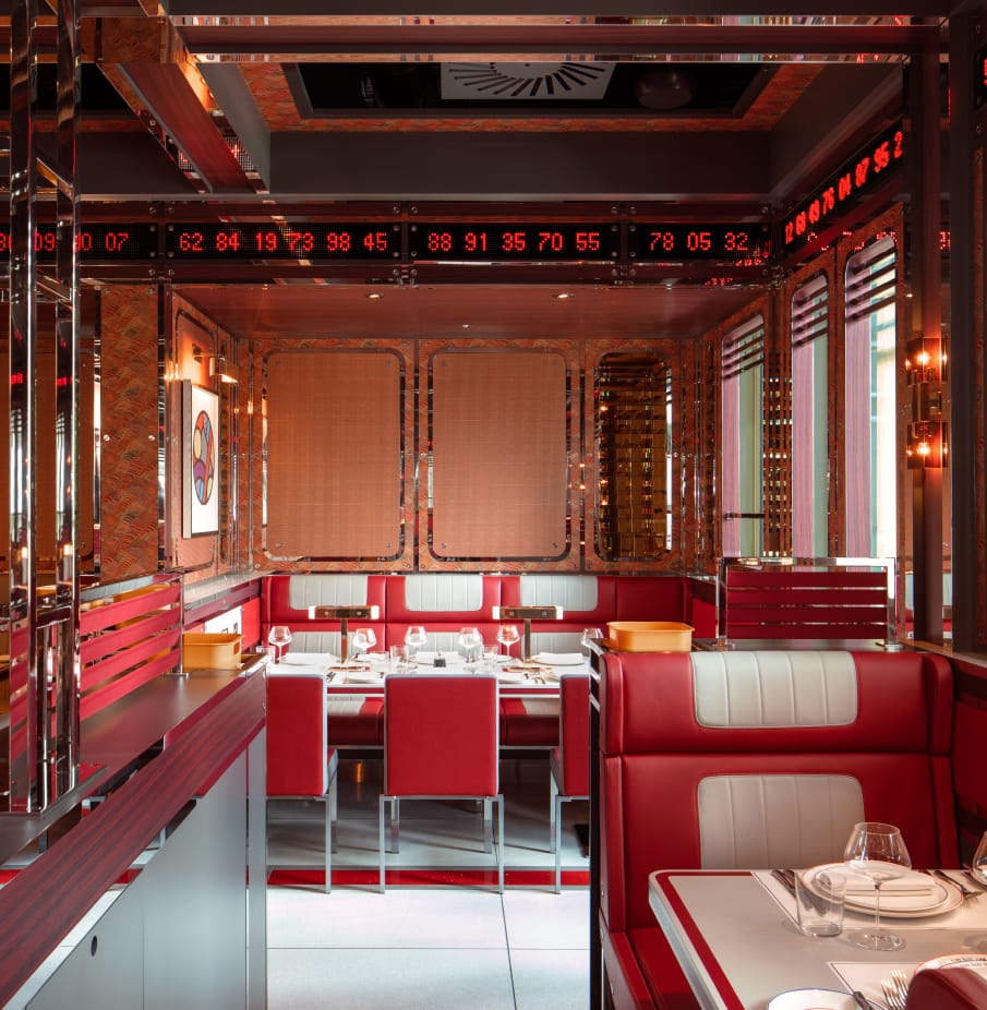 Perched 10 floors above the City in the Leadenhall Building, Bob Bob Cité is the bold, younger sibling to the renowned Bob Bob Ricard in Soho. Conceived as a brasserie for this century, the brief from visionary restaurateur Leonid Shutov was clear: create something unforgettable – a restaurant that feels both eccentric and exacting, indulgent and impeccably executed. Think the Orient Express meets bullet trains.