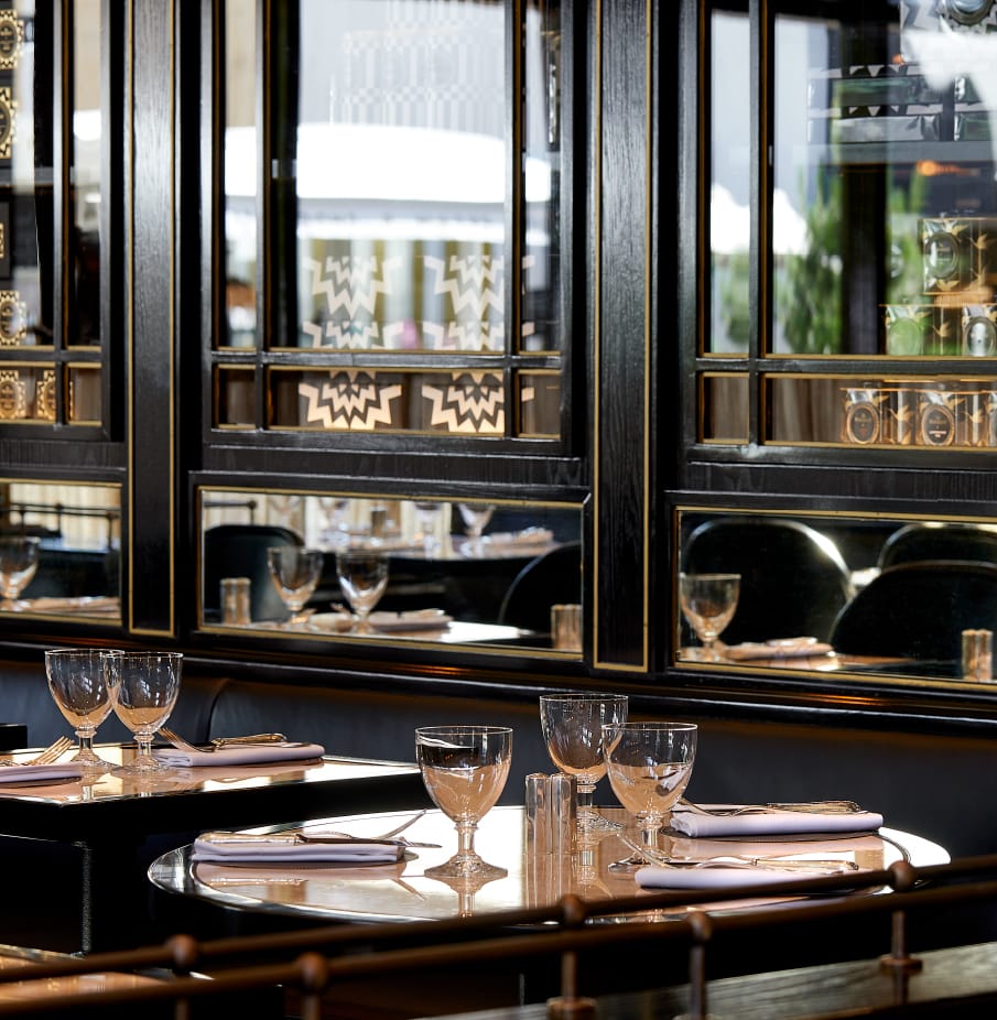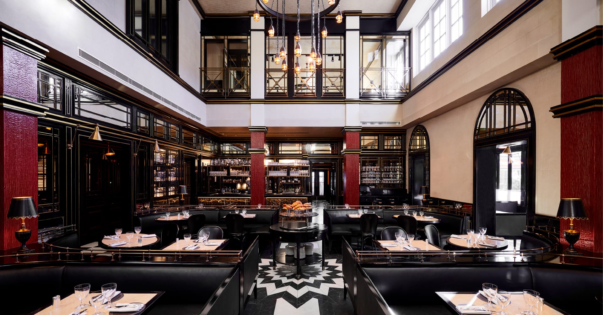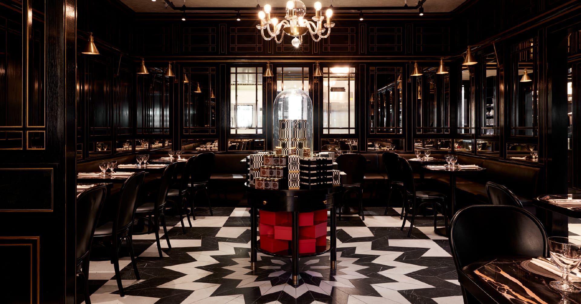 From the start, the challenge was clear: to echo the style and spirit of the original Wolseley without mimicking it. The studio reinterpreted classic 1920s design through a modern lens – retaining the signature monochrome flooring, black leather banquettes and lacquered tables while introducing new layers of warmth and detail. Red pillars nod to hidden archival touches and bespoke paintings inspired by the chinoiserie doors of the Piccadilly site build a subtle thread of continuity between the spaces.