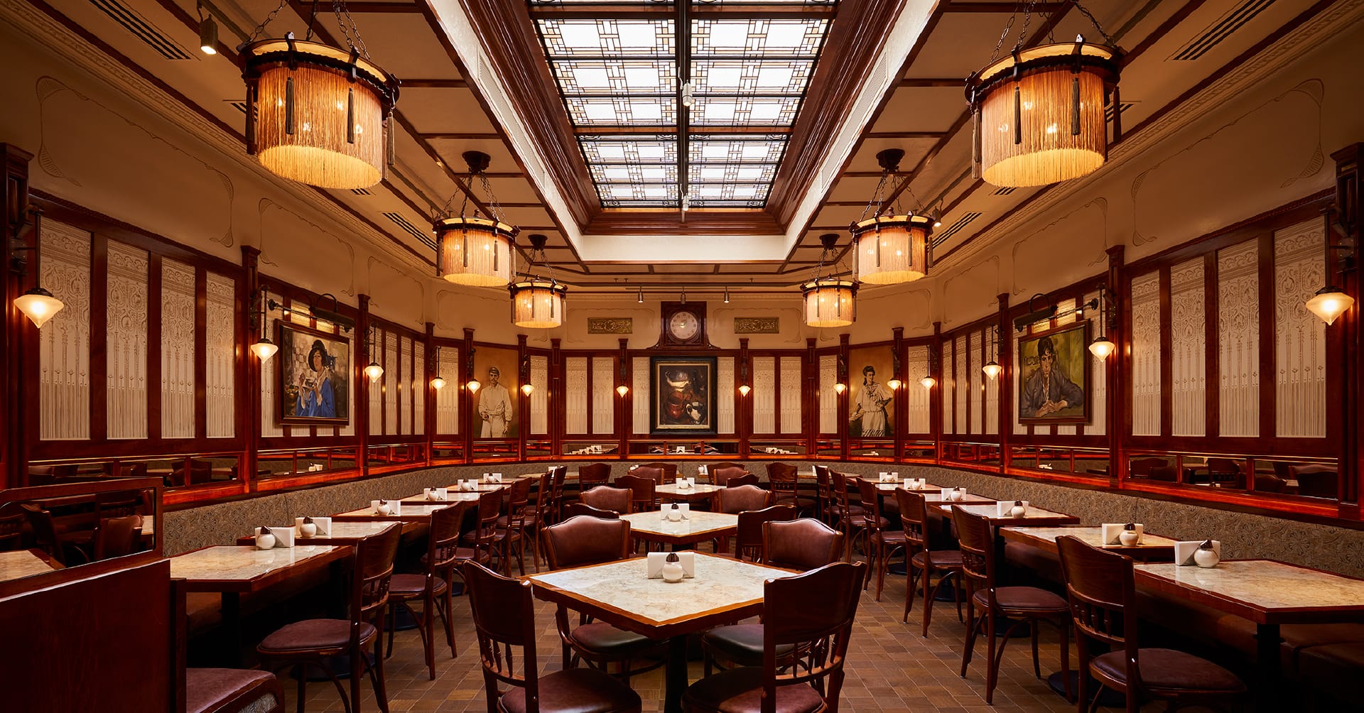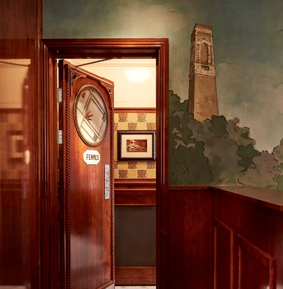 Every detail in Soutine is tuned to emotion: the muted palette of nicotine and putty in the custom mosaic flooring, the curve of a barstool, the delicate hand-painted mural that wraps the staircase – its painterly brushstrokes referencing the area’s artistic lineage and the nearby Lord’s Cricket Ground. The result is a space that feels as if it has always been there, subtly woven into the fabric of the street.
